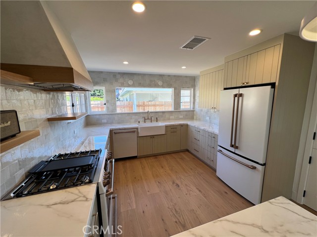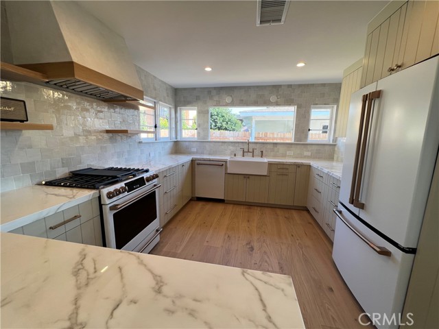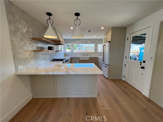 Don’t miss this extraordinary opportunity to secure a recently remodeled home that’s essentially brand new construction! Located in a highly desirable area, this property feeds into Newport Heights Elementary School, offers a 5-minute walk to 17th Street, and is just a 10-minute bike ride to the beach. This home has undergone a complete transformation with no expenses spared. Enter through a new White Oak wood dutch door into a spacious great room layout. The living room flows into the dining area then into the breakfast peninsula ending in the completely remodeled kitchen. The kitchen features all-new white Cafe appliances, custom handmade Moroccan Zellige tile work and custom cabinets. Another wood dutch doors gives access to the private carport area with all new concrete, ficus hedges and cedar fencing. French doors off the dining area lead to a private wood deck space, enclosed by ficus. Adjacent to the private outdoor deck is an outdoor shower perfect for those sandy beach days. The back and side yard offer enough space for both a cold plunge and outdoor sauna. Wide plank White Oak wood flooring throughout the house provide a warm and elegant feel. High end custom tile in the master bathroom and guest bathroom. The indoor laundry room is located behind a pocket door in a hallway. There is ample parking space with new concrete for the carport area and two open parking spots. The new cedar wood fencing and new landscaping by popular locale landscape designer offer multiple area to relax and entertain.rnrnThis beautifully remodeled home offers modern amenities, an unbeatable location, and attention to detail throughout. Don’t miss the opportunity to make this your new home. The subject is located on the corner of Orange Avenue and Knox Place. *Easiest to enter off Knox Place*. Pets okay.
