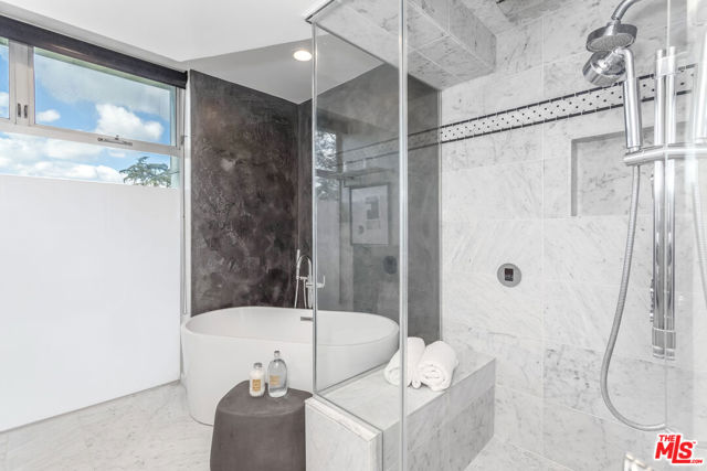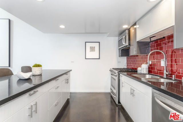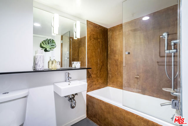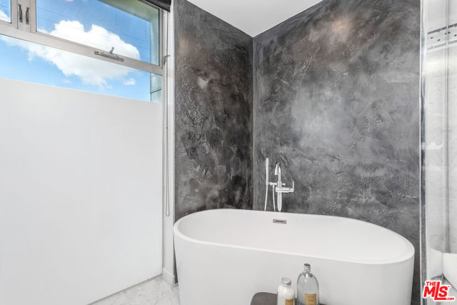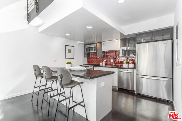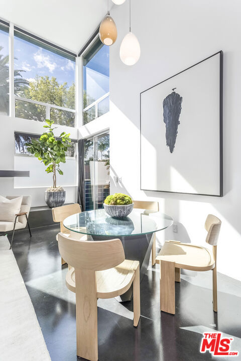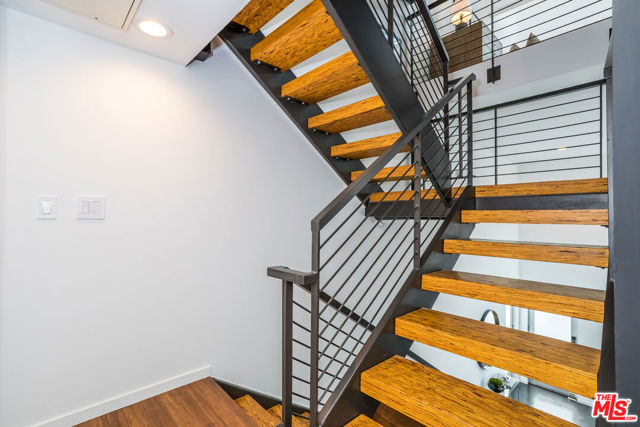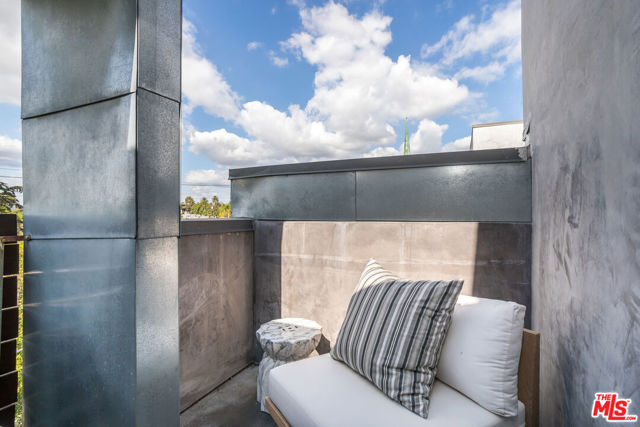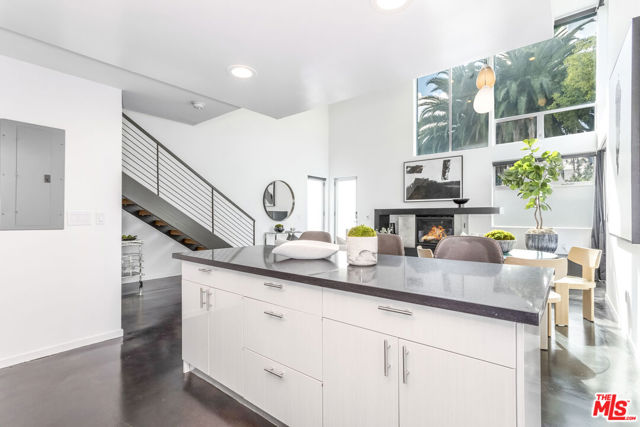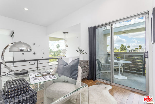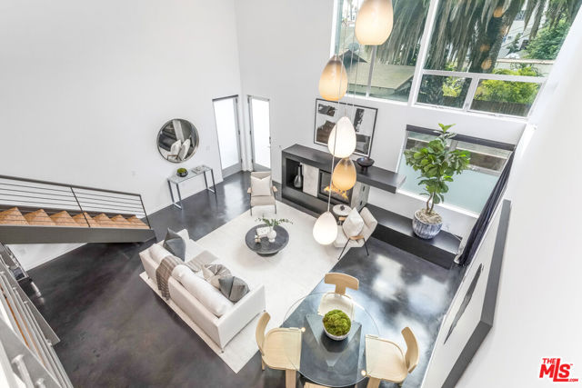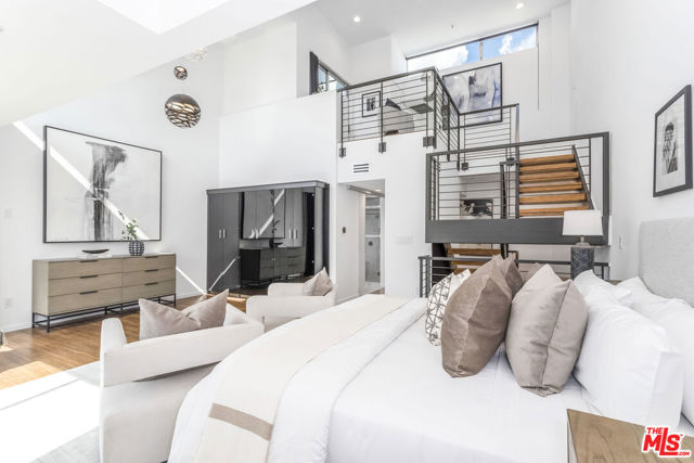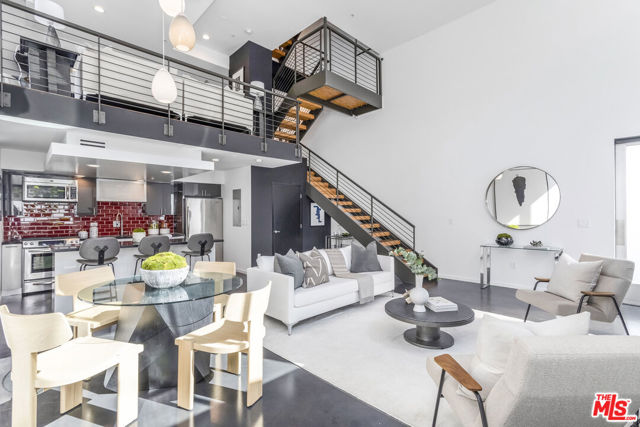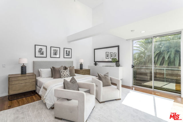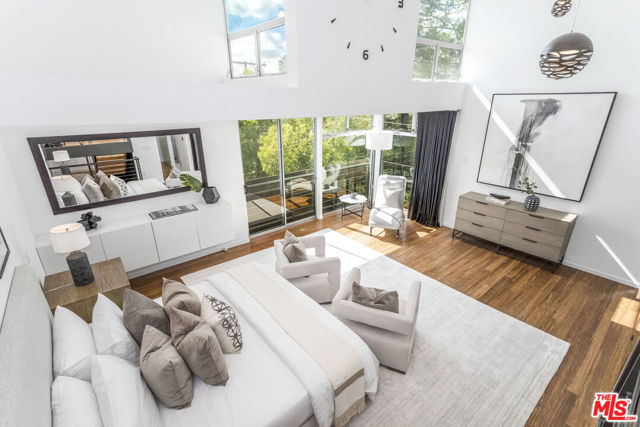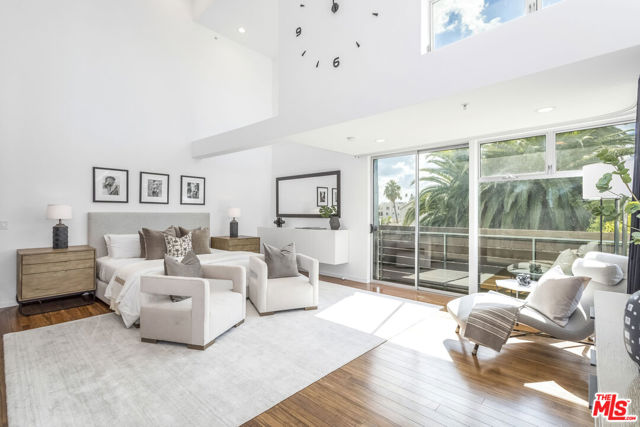 A contemporary masterpiece located in Hancock Park is the brainchild of noted Architect Jonathon Davis of A + D Architecture, formerly with Frank Gehry & Assoc. This 2BD + 2BA loft style townhome is the largest showpiece of the development and positioned at the optimal South West corner with privacy, views and volume. Soaring 20 foot ceilings greet you as you enter at main level with an open living room that flows into a dining room with gas fireplace, modern kitchen with stainless steel appliances and includes a full bathroom and balcony area. The second level can be used as a bedroom, office or den. The third level features the Master bedroom with additional soaring 20 foot ceilings, en-suite bath, double sink, large soaking tub and frosted glass. This connects to yet another level that can also be used for an additional office and another patio area with gorgeous North-West views of the city. Hardwood floors and warm polished concrete and eco- friendly materials fill the home. Gated building with 24-hour security cameras, 2 parking spots plus additional guest parking, 4 Port EV Charger, additional storage and a large bike room. The building also includes EQ insurance. Centrally located, pedestrian friendly near Larchmont Village, Koreatown Nightlife and the Purple Line.