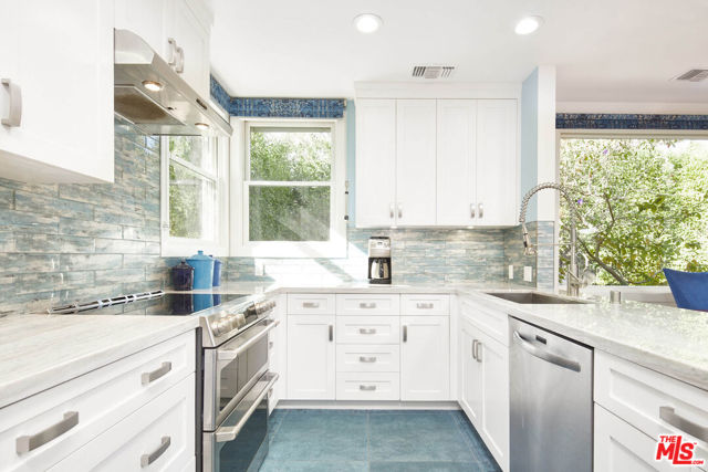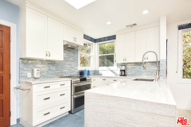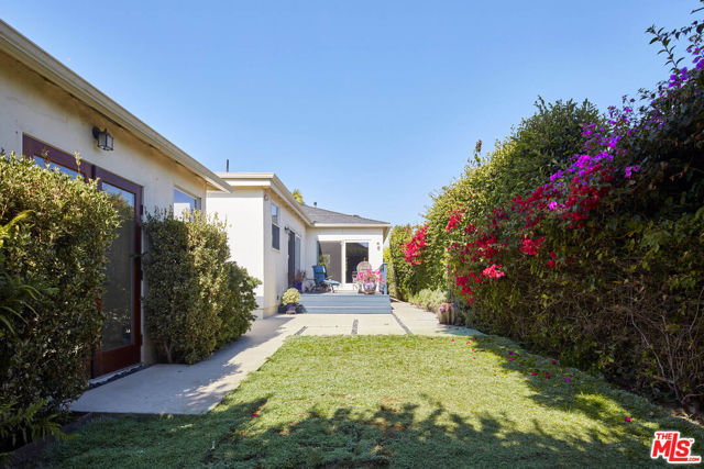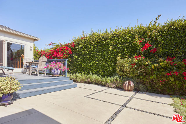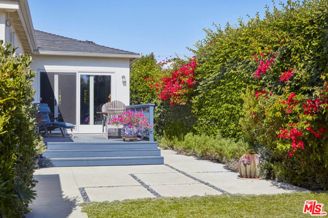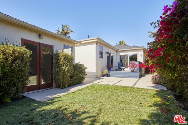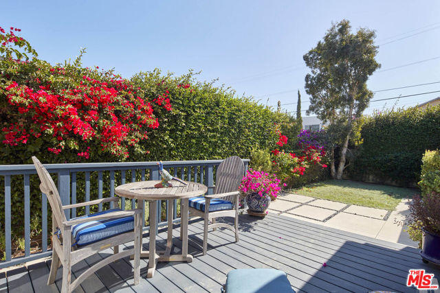 Nestled on a tranquil cul de sac, this meticulously maintained property is a hidden, energy efficient gem just steps away from an array of amenities and nearby attractions. Privacy is paramount here, with the property thoughtfully walled and gated, creating a secluded sanctuary that offers a slice of paradise within this bustling beach community. The interiors have been thoughtfully designed with a keen eye for detail, featuring selected materials that exude elegance. High-end marble, blue glass tile, and custom cabinetry harmoniously blend with maple-engineered flooring to create a sophisticated yet inviting atmosphere. Natural light streams in through skylights, enhancing the modern ambiance that’s seamlessly integrated in the updated kitchen. The bright and open floor plan effortlessly connects to a spacious deck, facilitating both indoor and outdoor entertainment. There are two bright and airy bedrooms including the spacious primary en suite with access to the outdoor deck. A private, gated alley grants access to the finished garage located at the rear of the property. This garage has been meticulously finished with lights, plugs, and cable/computer outlets and presents the possibility of serving as a versatile bonus space for your creative endeavors or storage needs. Outside, the lush, but drought-resistant landscaping envelops the property with custom concrete pavers, a serene water feature, and drip irrigation system, transforming the exterior into a visual masterpiece. This meticulously designed outdoor space provides an oasis of calm, where you can unwind and bask in the beauty of your own private retreat. The property has been recently upgraded with owned solar panels, energy efficient heat pump/AC, heat pump water heater, Cafe induction range and LG WashTower. You’ll find yourself conveniently located near the beach, Whole Foods, the Penmar Golf Course, and the vibrant shopping and dining scenes on Rose Avenue, Lincoln Boulevard, and Abbot Kinney.