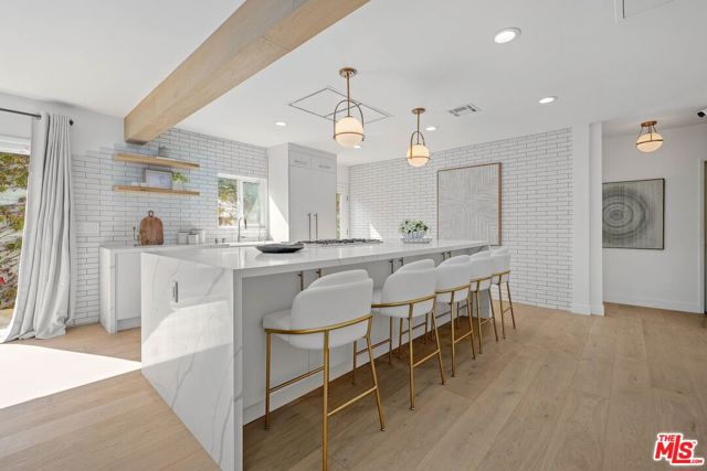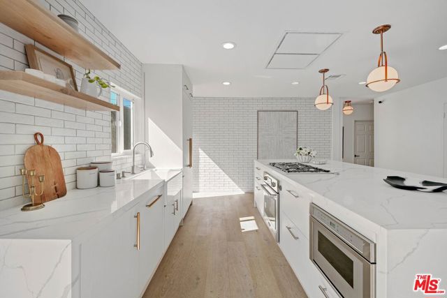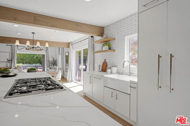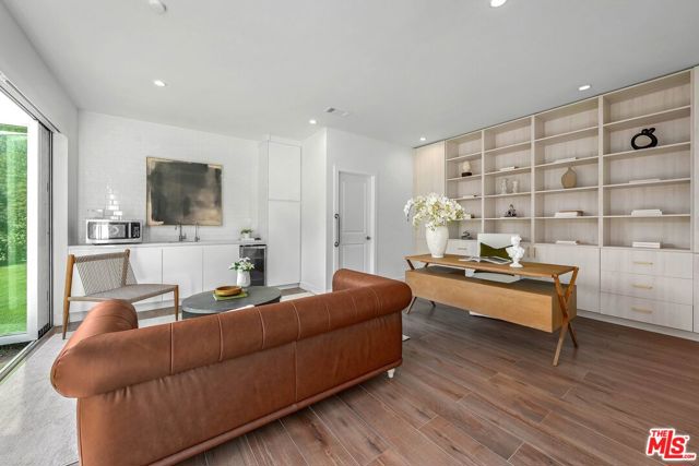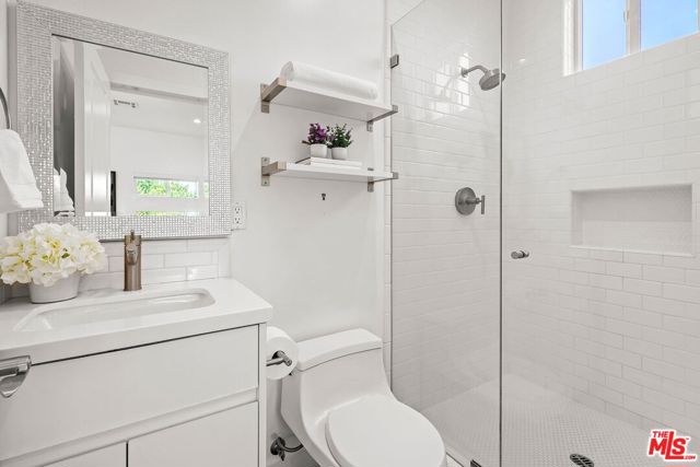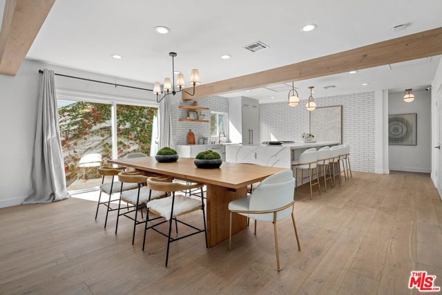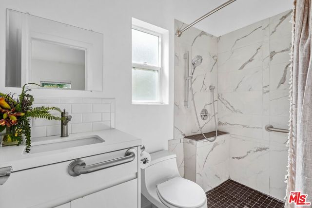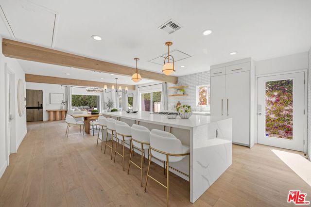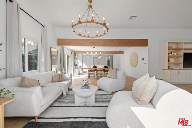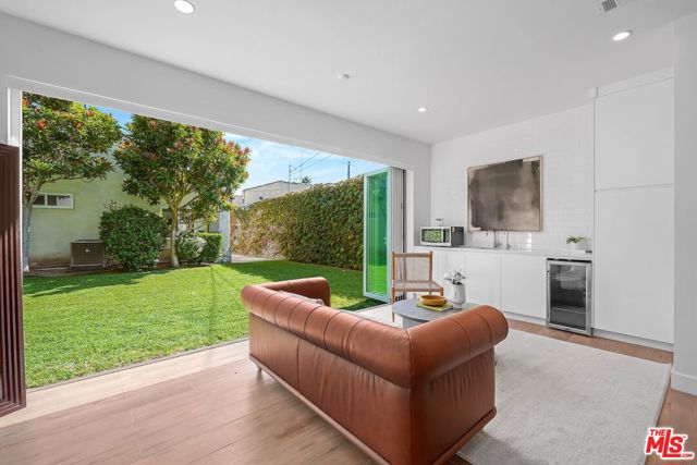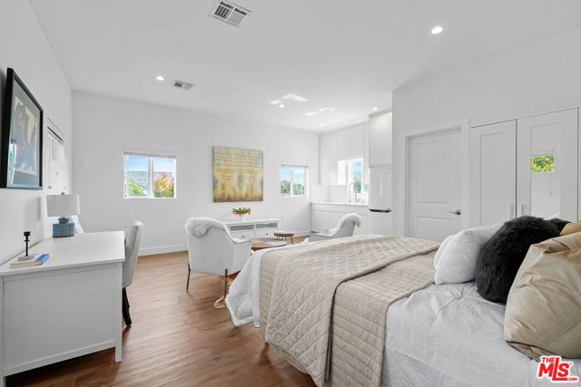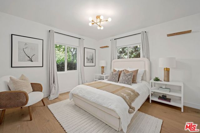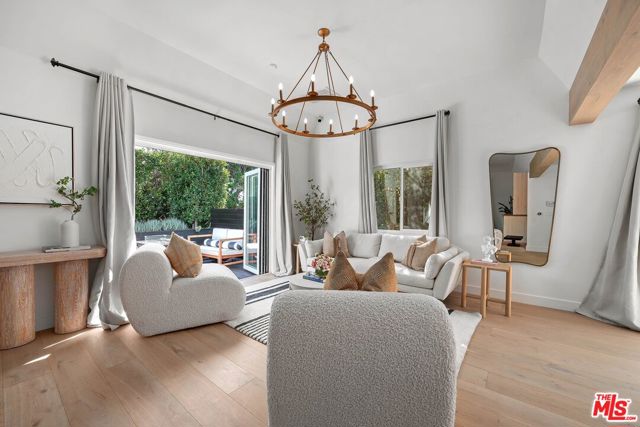 An exceptional opportunity awaits in this outstanding property that seamlessly blends timeless design with modern luxury. Nestled within the security and serenity of a private lot, this meticulously remodeled home unveils a truly distinctive compound brimming with limitless possibilities. Thoughtfully crafted, this residence encompasses a main house, discreet front patio with a concealed seating area and firepit, a separate two-story Accessory Dwelling Unit (ADU), and a spacious backyard. This property is perfect for those seeking a versatile living space, whether it be for personal use, work, entertainment, or generating rental income. As you step into the main house, you’ll be instantly captivated by the seamless blend of contemporary elegance and timeless style. The interior has undergone meticulous updates, crafting an inviting and enchanting atmosphere throughout. The main house boasts three spacious bedrooms, two baths, chef’s kitchen, and a generous living and dining area. The living room effortlessly extends to an expansive outdoor front terrace adorned with a glass fire-pit, while the remaining common areas are bathed in natural light through expansive windows and panel doors that open completely. The fully updated kitchen is a masterpiece, equipped with high-end Miele and Thermador appliances, a capacious center island perfect for culinary artistry and dining, all within a stunning open layout. The primary bedroom features a new modern fireplace and a custom walk-in closet with built-ins. The two other well-proportioned bedrooms provide serene backyard views and share a full bath. The ADU comprises a spacious ground-floor great room with a kitchenette and full bathroom. This versatile space can function as a serene entertainment area, a home office, or an additional bedroom. The second floor of the ADU with a separate entrance features another roomy bedroom space with another full bathroom and kitchenette. The sprawling flat backyard provides ample space for outdoor enjoyment and offers room to potentially add a pool, creating an ideal setting for entertainment or relaxation. The generous yard also features an outdoor BBQ, dining area, and jacuzzi, providing the perfect oasis for unwinding. With its fusion of contemporary and classic aesthetics, generous size, and prime location, close to all that Los Angeles has to offer, this home stands as an undiscovered gem.
