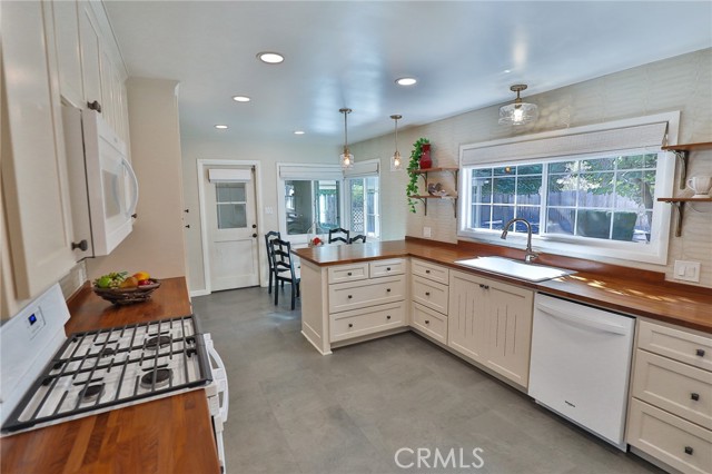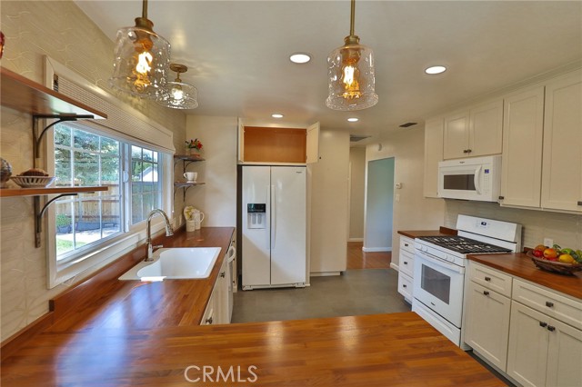 Welcome to this sweet home with a perfect blend of Charm, Changes and Convenience, I promise this home will not disappoint! Walk in and see your CHARMING brick fireplace, thoughtfully updated with a cozy “Lopi” woodstove insert. Your large front windows will fill the living room with natural light, with big views of your pretty front yard. As you walk across your old oak floor, notice the large closet in your living room! Around the corner, you will see big CHANGES in what a kitchen looks like these days! This kitchen has beautiful updates, with modern amenities, making it a real joy to cook and entertain in your kitchen. CONVENIENCE is important to all busy people these days. In the last couple years, the Seller has made many wonderful kitchen updates such as “Custom Soft Close Cabinets”. Your pretty Luxury Vinyl Floors add a clean and updated look. The overhead lights are pretty and plentiful! The Walnut Butcher Block Counters are just gorgeous! This sweet home comes with your newer Whirlpool appliances: Refrigerator, Dishwasher, Stove, Microwave, and Washer and Dryer – all just for you! Just past your kitchen, in the hall, are 3 banks of pull-out cabinets, great for holding spices etc. Next to that is a “stacked washer and dryer” tucked away into a handy closet, between the kitchen and the bathroom! There are fresh cool tones in the kitchen and in your lovely bathroom. Two similar bedrooms are at the end of the house, both comfortably near the bathroom. New Roofs were installed in 2022. The pretty front and back yards look wonderful. Plantings and large trees on the west side offer good shade. Nestled on a spacious lot, you can be proud of both the front and back yards, they will not disappoint your gardener. Recently the owner reduced some of the grassy areas and installed dark gravel, all around the outer edges. Now you can spend less time on yard work and more time enjoying the beauty of your property. There are storage units, strategically placed to easily access your exterior storage, yard tools, equipment etc. In the back of the garage, there is a small old workshop that just big enough to putter in! The left side of the garage floor was lowered, please watch your step! Would it be convenient for you to live 2.5 blocks from the North Valley Plaza? You can leave your car at home and take a quick walk to your favorite eateries, restaurants, stores, banks, favorite theater and plenty more! This home is a unique offer, I hope you see it soon.