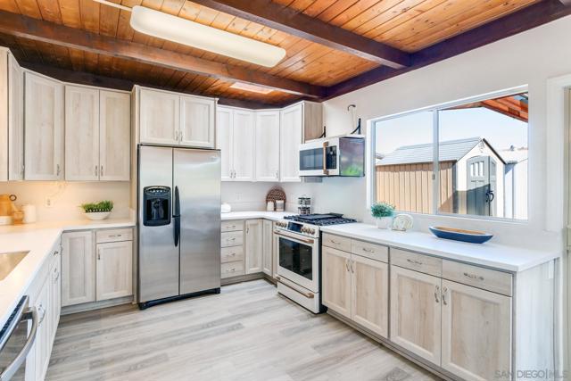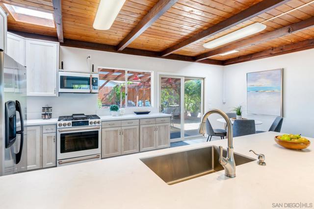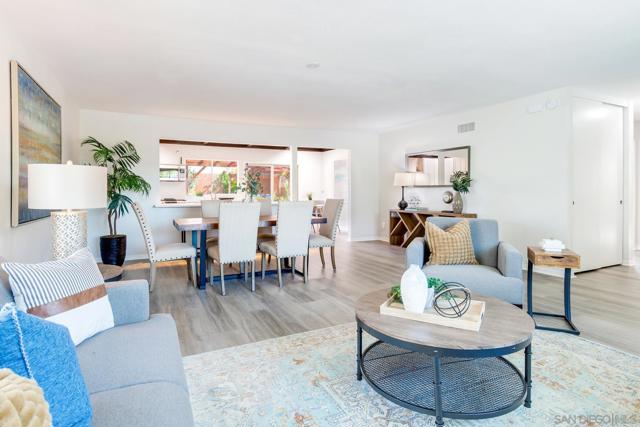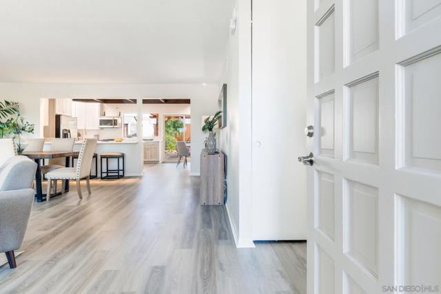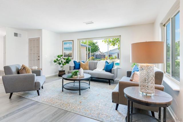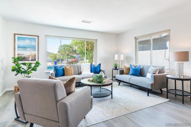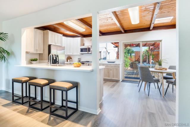 Nestled in the heart of Mira Mesa this single story home exudes a sense of charm. The open floor plan is immaculate and boasts 3 bedrooms, 2 baths, living room, dining room, and cozy breakfast nook. This lovely residence has just undergone a refresh with paint inside, new flooring, kitchen cabinet refacing, designer lighting, all new door hardware, switch plates and electrical outlet covers. Step into the lush backyard with a covered pergola perfect for sitting in the afternoon sun, plus a patio for al fresco dining. This peaceful setting is complete with the beautiful sounds of a waterfall cascading into the Koi pond. Not only is this home a great find, it offers solar panels and direct access to the 2 car garage. Conveniently located just blocks to Restaurants, Target, Petco, Vons, Schools and a Movie Theater. Easy access to the 15 and 805 freeways. Don’t miss this one!