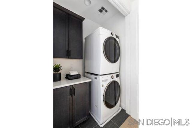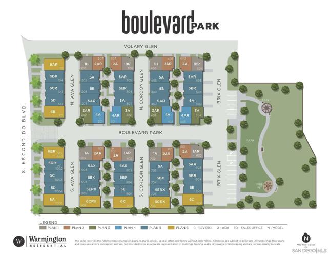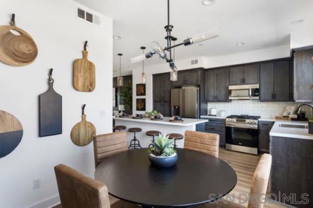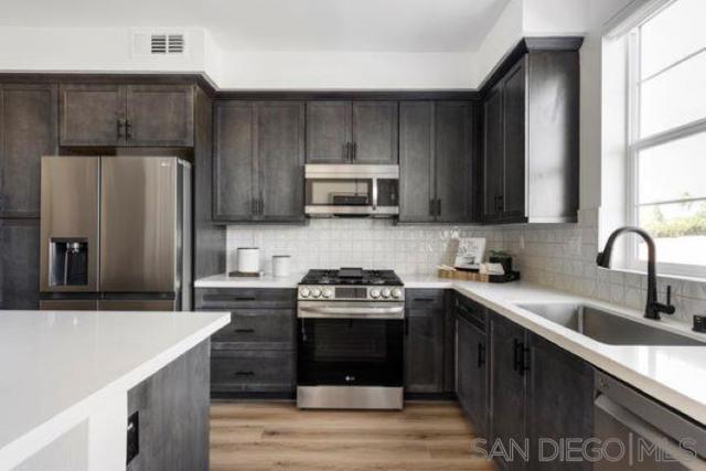 Brand new construction in Escondido! This spacious 3-story townhome offers modern luxury, with large windows, 9′ ceilings, energy efficient. This 3 bedroom home also has a den on the first floor. Have 3 cars? No problem! This home offers an attached, 2-car garage plus a driveway for additional parking space! There is a small patio area outside, but the location is near the community’s park and there is a view of the park from the kitchen/dining room windows. There is a spacious living area and open-kitchen; the kitchen island is large, with no sink, so it’s completely usable. Stainless steel LG appliances are included, featuring a 5-burner gas range, microwave/hood & dishwasher. The quartz countertops are lovely, as is the white cabinetry throughout. Step upstairs to the top floor, and find a comfortable primary bedroom with walk-in-closet and bathroom with double sinks. There is a laundry area with space for a stacked washer/dryer and extra linen storage. Many modern conveniences are also included, such as the Ring video doorbell, “smart” thermostats, “smart” switches. Home will be ready to move in around March 2024. Buy now and select your finishes for a limited time!