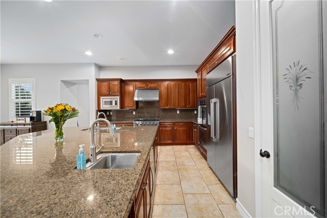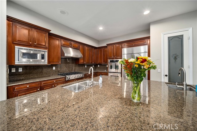 Spectacular Ana Verde FULLY FURNISHED executive family home on almost a one acre lot is ready and waiting for you!!!rnExtremely rare find in beautiful Ana Verde Hills as this incredible home features over 4100 sq ft of spacious living w/formal living/dining room, family room w/gourmet kitchen & nook area for casual dining, 4 generously sized bedrooms, 3 full baths, downstairs office & your own theater/game room! There are well over 100K of upgrades t/out this impressive home which also boasts a private double wrought iron gate entrance too! You will be greeted by more picturesque landscaping & then stone columns as you step up into your double door leaded glass entryway! You will fall in love as soon as you see the lavish grand 22 ft ceiling foyer w/extravagant mahogany & wrought iron staircase & travertine style tile floors! Step down into your formal living room or pool table room w/brick fireplace, attractive columns, coffered ceilings & crown molding too! The dining room is adjacent & has plenty of room for expansive holiday dinners w/gorgeous luxury laminate floors! Then go see your family room w/floor to ceiling bouquet stone fireplace w/plantation shutters abound & ceiling fan off of your gourmet chef’s kitchen w/granite countertops, enormous center island w/2 separate sinks, an almost brand new stainless steel sub zero refrigerator/freezer, double ovens, new 6 burner gas range top, vent hood, built in microwave, trash compactor, wine fridge, walk in pantry & mahogany braided cabinetry! There is also a double door den/office, guest bathroom w/ tiled shower, oil rubbed bronze fixtures & indoor laundry room w/sink! Then head upstairs to see your one of a kind master suite w/its own balcony/deck & en suite like you’ve never seen before! The en suite has an extra large tiled shower, jacuzzi roman tub, vanity area, privacy bathroom & custom his & her closets w/all built in cabinetry! There are also 2 separate cabinetry areas off the hallways. Then go check out your 3 spacious bedrooms ideal for the kids or in-laws! Can you believe there is even a 400 sq ft multi functional theater/game room w/double doors, more plantation shutters & built in mini bar too! The backyard features lush grass, lovely hardscape, children’s play area, lots of concrete w/stuccoed patio & huge side yard too! There is a 2 car garage & a separate 1 car garage for all of your storage needs. This marvelous & elegant home is a MUST see so hurry before it is sold!!