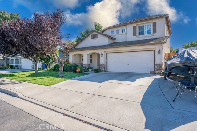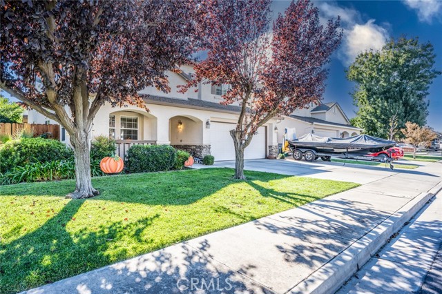 Home Sweet Home with a beautiful pool! Welcome to this splendid 4 bedroom 2 and a half bathroom home boasting 2038 square feet of comfort and style. The recently remodeled kitchen showcases gorgeous quartz countertops and beautiful backsplash tile and white painted cabinets. Stainless steel appliances that include a gas stovetop/oven. Entertain at your spacious kitchen countertop while watching TV in the family room that connects right off the kitchen area. Step outside the patio doors and enjoy the amazing in ground pool, BBQ area and 2 large side yards with orange and lemon trees. Leased solar for energy savings. Garage has a tandem set up with perhaps 3 parking spots or just enjoy a super size storage or workshop area. Beautiful newly painted interior walls and plush carpet and pad just installed. Upstairs you will find nice sized 4 bedrooms with lots of windows to provide natural light. Storage galore in this beautiful well thought out floor plan. The property is situation in the desirable southside Cresthills 2 subdivision of Los Banos.