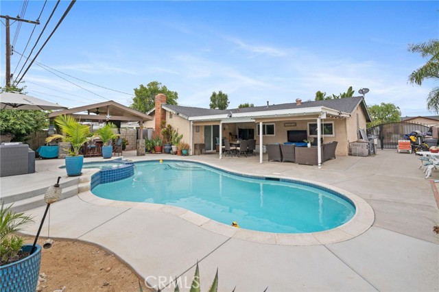 Beautiful one story 3 bedroom 2 bathroom house with large family room. Located in the city of Norco. Perfect house for you! Luxurious, cozy backyard with a pool and spa ready to entertain friends and family. Large BBQ area with patio covering for those summer BBQs. Kitchen has granite countertops and showers were remodeled. Recessed lighting in the kitchen, living room, dining area and family room. RV parking or parking spaces for 4 cars. Low maintenance front and backyard. Access to freeways 91 and 15. Close to shopping centers and the famous Silverlakes!