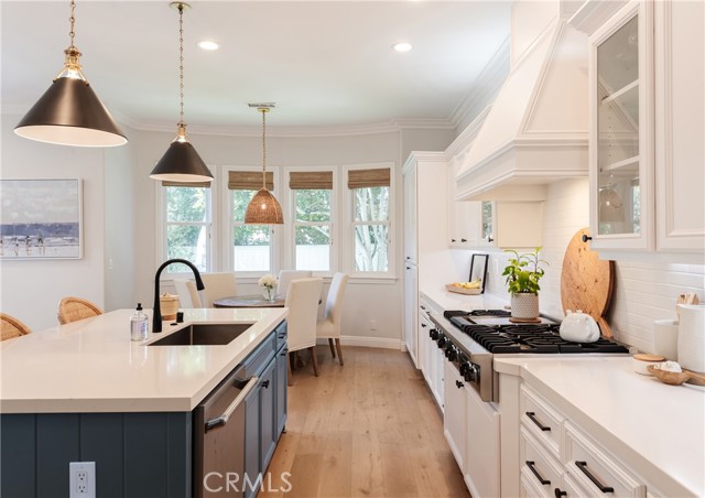 Ideally situated in one of the most inviting streets in Manhattan Beach’s Tree Section is 2605 Pine, a beautiful 5 bedroom, three-and-a-half bath fully remodeled home that features a traditional floorplan, open spaces, and a sunny west-facing backyard. A Dutch door opens to a welcoming foyer, with a beautiful spiral hardwood staircase adjacent to an inviting sunken living room with a fireplace. The open-plan kitchen and family room are the heart of this charming home, with a center island, stainless appliances, countertop seating and a breakfast nook. The generous family room includes a fireplace and an abundance of space for gathering and relaxing, and opens out into a large patio and lushly landscaped yard. The formal dining room is strategically located next to the Chef’s kitchen and offers the perfect spot for entertaining friends and family. Upstairs, five bedrooms offer private living quarters. The tranquil Primary Suite features high ceilings, a private balcony and two-way fireplace, while the luxurious en suite Primary Bath comes complete with a soaking tub, shower and dual sinks. The four additional bedrooms are roomy and bright, and a nearby laundry room adds convenience. Sited within easy walking distance to the greenbelt in a quiet, friendly neighborhood.