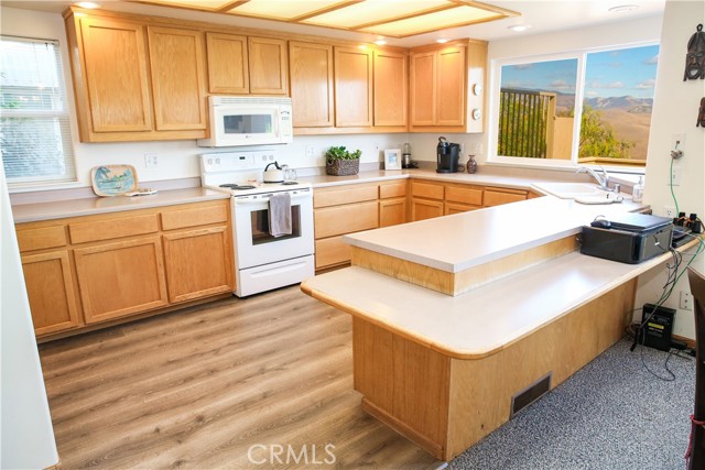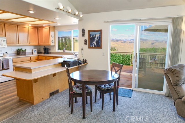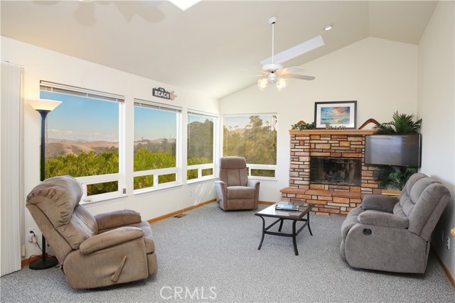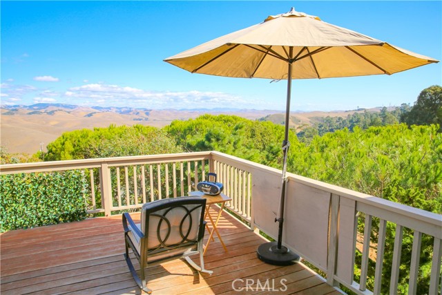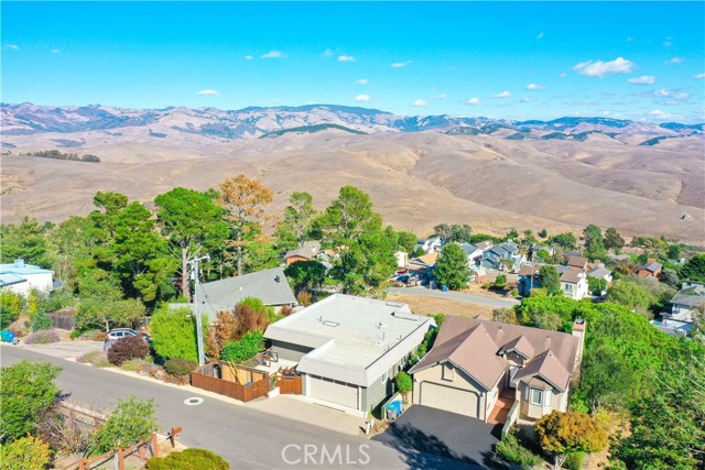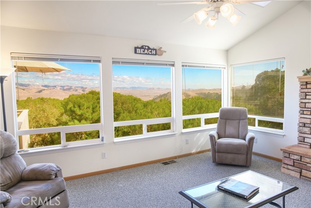 Step into to this perfectly situated home located at the Top of the World where privacy & unparallel views await! Welcoming more sun, less fog & warmer temps, these attributes all contribute to what makes this sought-after location in Cambria so unique. Stepping into the entry, you are greeted by sweeping views of the Santa Lucia Mountain range. Featuring 3 bedrooms/3 baths, the home offers main level living with 2 additional bedrooms on the lower level. The great room features an open floor plan with a cozy wood burning fireplace, vaulted ceilings, skylights & expansive windows affording lots of natural light making this home ideal for entertaining. A spacious, well-designed kitchen offers an abundance of storage to include lots of natural light & all new laminate flooring. An oversized inside laundry room has plenty of options to include expansive counter space & a built-in laundry sink. Off the dining room is a large IPE deck overlooking the majestic mountains. Imagine the possibilities; enjoying a cup of coffee in the morning on your deck as you watch the sun rise. Or perhaps a glass of wine as the moon crests the top of the mountain ridge. An oversized 2-car garage has an abundance of storage for all your coastal toys making this home well suited as a primary residence. The low maintenance park-like back yard is studded with coastal trees making it private & serene, perfect for cozying up with that good book. Wildlife is common in the area to include deer & turkey sightings. Turnkey & ready to call yours!