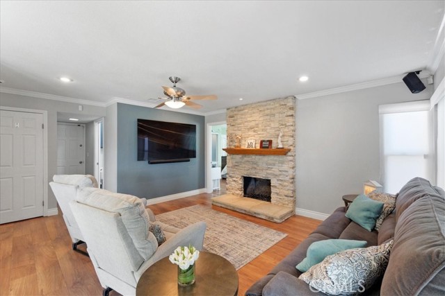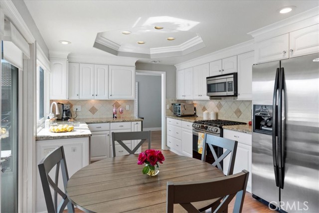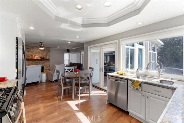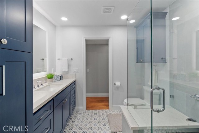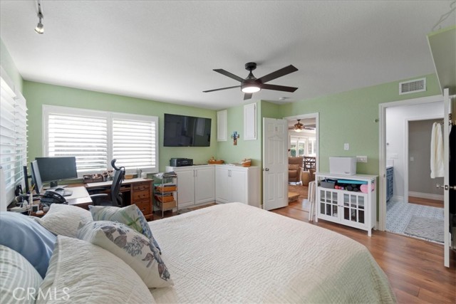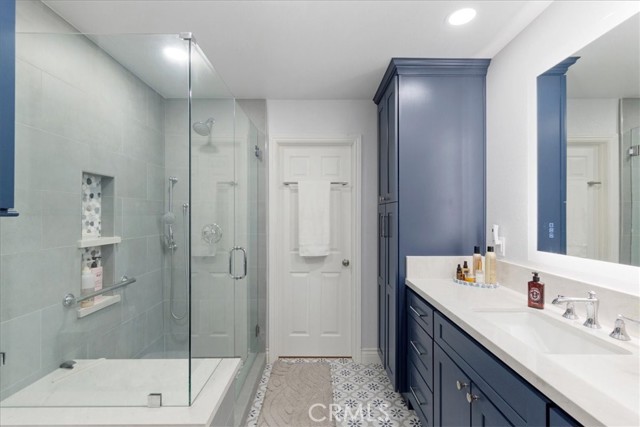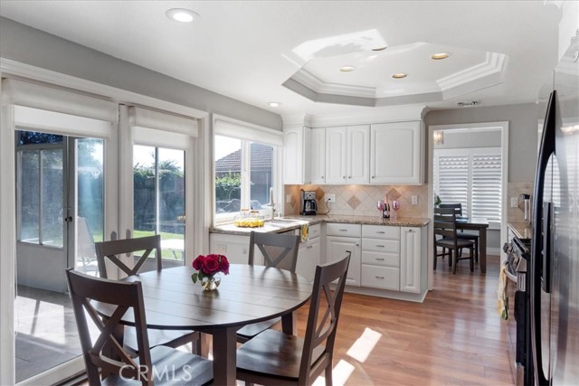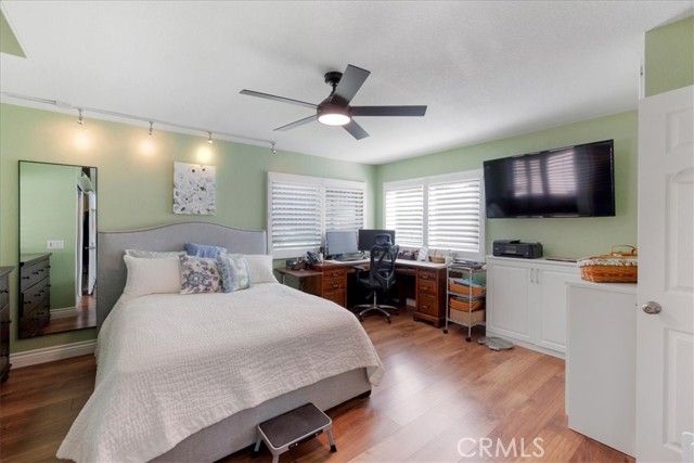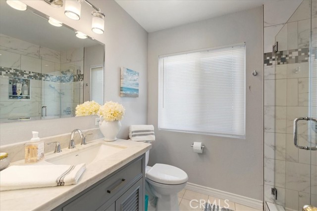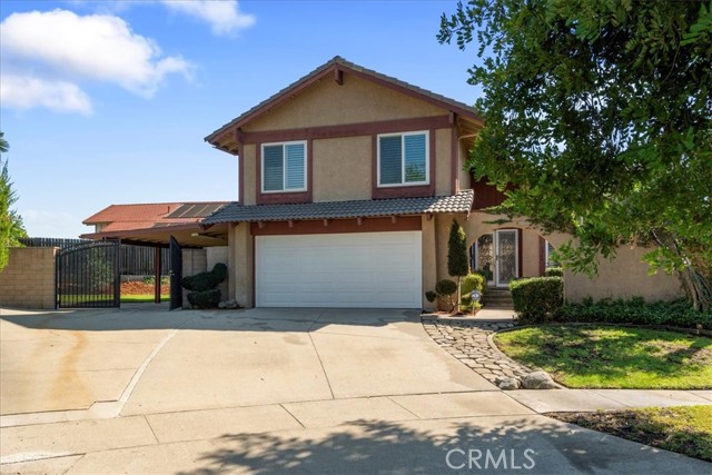 Have you been looking for a home in a lovely neighborhood, at the end of a cul de sac, with a large back yard, that has been extensively remodeled and upgraded? Look no further! Welcome to your dream home! The seller has had numerous updates completed over the years making this feel as though it is a new home. Enter this property to find soaring ceilings. There are numerous windows have been replaced with dual paned windows, that let in an abundance of natural light. Many of the windows have custom made wood shutters. You will love the kitchen, as it has been remodeled with newer cabinets, granite counters, a new sink and backsplash & recessed lighting. You will enjoy the pantry that was designed and built by California Closets, giving you plenty of storage space. The kitchen is ideally situated in the home where you can easily serve to the formal dining room or enjoy the open flow concept to the adjacent family room. There is also a kitchen nook. The family room is spacious and offers a cozy fireplace that has been updated with stacked stone & a walnut mantle. One of the prime features of this property is a second, downstairs primary suite. This space is spacious and has a beautiful newer 3/4 bath. This is perfect for guests or nanny or granny. Upstairs you will discover two secondary bedrooms, both that have custom closets, that share a newly renovated hall bath as well as the second primary suite. This room is very spacious & has a large walk in closet. All closets upstairs were designed & finished by California Closets. There is new paint throughout the house. The flooring is a recently upgraded high end wood-vinyl. There is also new tile in two bathrooms and new carpet in the secondary bedrooms. As can imagine, this home is move-in ready! The water heater has been replaced with a tankless water heater. In the garage you will find newer cabinets and shelving units, also installed by California Closets. A special perk is the enclosed patio room located off the back of the house. This is the perfect space for an office, children’s play area, gym, craft room, it provides extra, flexible use space. The yard is very spacious & there is a large side yard that has a covered area for projects. The wrought iron gate is stunning. Recently installed, it boasts a beautiful decorative, black shimmer iron design & adds an element of privacy to the property. This home is located close to schools, shopping, restaurants & more. It is also commuter friendly.