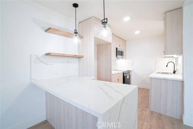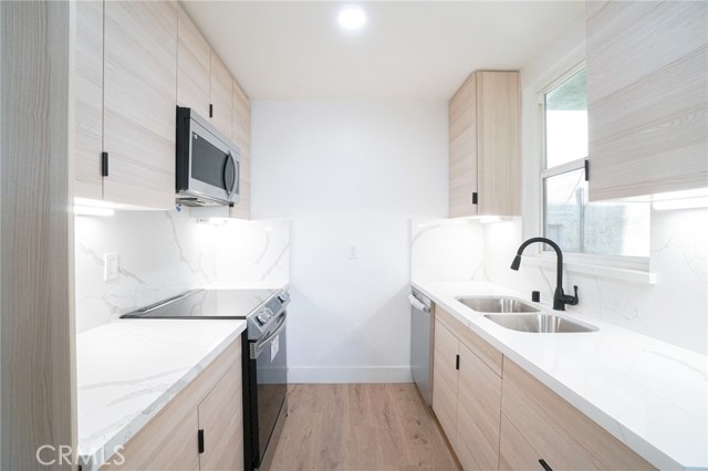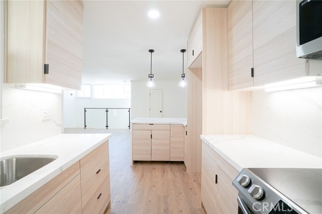 This is it!!! Your own slice of Paradise a short walk from the Beach & Pier. Dreams can come true! rnBeautifully renovated 2 story 2 bedroom 1.5 bath home in Santa Monica. Kitchen is ready for the Culinary Home Chef and has been updated with Beautiful Modern European Cabinetry with Under Cabinet Lighting, New White Quartz Countertops, New Stainless Sink and Heavy Duty Faucet & Modern Pendant Lighting, Kitchen also Features an area with Open Shelving perfect for Adding your Personal Touch . All New Wood Laminate Flooring throughout. Downstairs powder room features New Chic Vanity with New Lighting and Contrasting New Black Tile Flooring. Make your way to the second story through the staircase complete with Custom Glass and Metal stair railing. 2 spacious Bedrooms have a bright and airy feel with New Paint and Luxury Laminate Flooring. Full Bath Features; New Modern Vanity , New Contrasting Black Tile Floors, Beautiful Newly installed Neutral Colored Tile Shower Surround & New Bathtub all complete with New Beautiful Large Lighted Mirror . In House Washer and Dryer hookups for added convenience. Don’t Wait. This Property will Not Last!