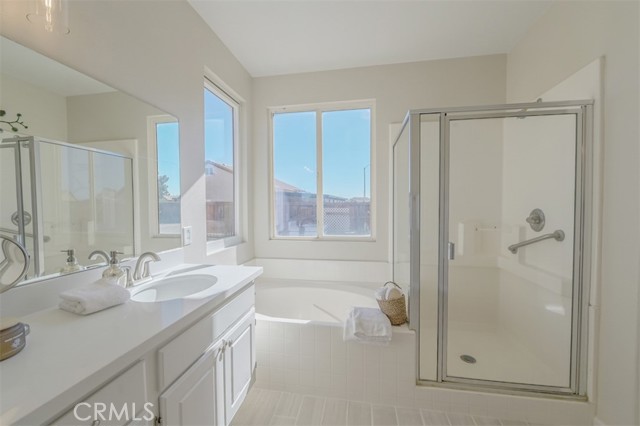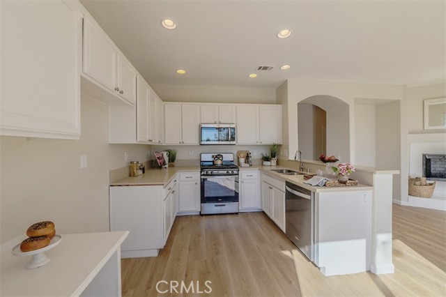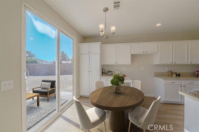 Beautifully remodeled throughout and bursting with modern style and character, this amazing South Adelanto residence is a home that anyone would be proud to call their own. This 6 bedroom 2 bath remodeled home is ready for you to simply move in, unpack and enjoy. Welcoming curb appeal is enhanced by a lush green lawn, towering shade tree and drought-tolerant landscaping at the end of a private cull-de sac. Step inside to discover the 6-bedroom, 2-bath layout filled with luxurious finishes and on-trend features, including modern light fixtures, new wood laminate flooring, and fresh new interior paint throughout. Open floorplan with lots of natural light gleaming through the windows across your seamlessly connected living room, hallway and bedrooms while framing picturesque outdoor views. An easy flow from the kitchen to the family room with cozy fireplace, ideal for gatherings. Sure to delight the home chef, the open kitchen equips you with a suite of brand-new stainless-steel appliances, including a range, microwave hood, dishwasher, faucet, garbage disposal and gorgeous white on trend cabinetry, with new quartz countertops complete this incredible culinary space. Newly updated carpeting cascades across the bedrooms and your primary where your comfortable private retreats await. Tastefully tiled baths accommodate the bedrooms, highlighting the modern freestanding vanities, faucets, lights, mirrors, and toilets. Generously sized, the primary suite enjoys a luxe ensuite with a quartz-topped double vanity, separate shower and tub for your convenience. Oversized pie shaped backyard with lots of room to inspire blissful gatherings. Set up your grill and host weekend cookouts in seclusion as the little ones have a blast under the sun. Other noteworthy features include indoor laundry room, new modern lighting and chandelier, large backyard, plus an attached 2-car garage. With all this incredible home has to offer, why just read about it? Take a tour to experience it for yourself before the opportunity is gone!