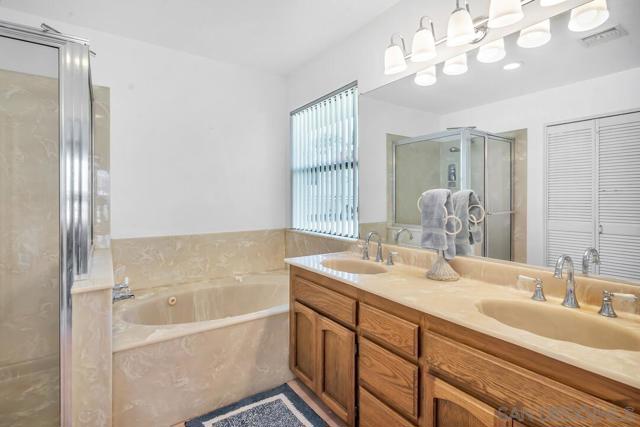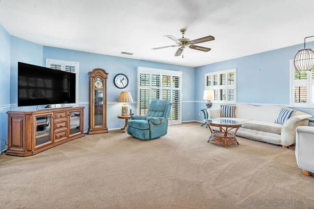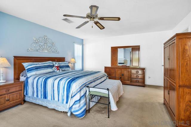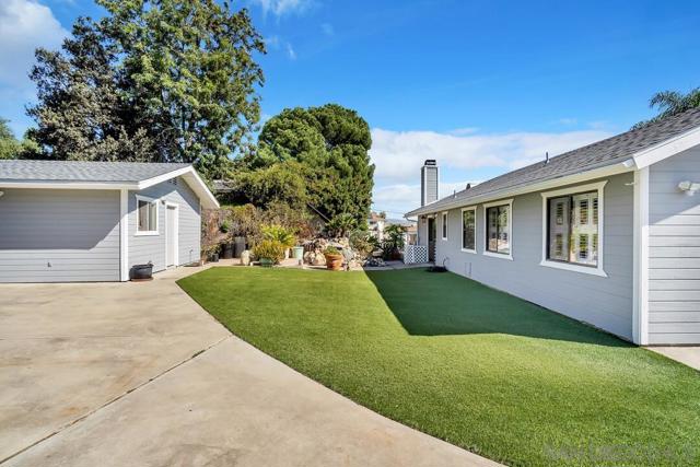 Welcome to this one-of-a-kind home in Santee. This charming single-story residence, situated in a quiet cul-de-sac boasting 4 bedrooms, 3 ½ bathrooms and 2,078 sq ft of living space. The curb appeal of this home begins with the vibrant and low-maintenance artificial turf that extends across the front and backyard. With a brand-new roof and exterior, you can move in with confidence. A dedicated laundry room with ample storage keeps everything organized and accessible. The spacious en-suite primary bedroom features a beautiful fireplace and large bathroom with a jacuzzi tub and walk in closet. Having two primary bedrooms provides flexibility for multi-generational living or guest accommodations. The open and bright family room is perfect for gatherings and quality time together, while the separate living room provides a more intimate setting for quiet moments. The spacious dining room and kitchen area makes mealtime a breeze. As an added bonus this detached workshop garage with a bathroom could be perfect for extra storage or an ADU. Plenty of space for boat and RV parking. Surrounded by great schools, shopping and freeway access, this house will be perfect for any family. Welcome to this one-of-a-kind home in Santee. This charming single-story residence, situated in a quiet cul-de-sac boasting 4 bedrooms, 3 ½ bathrooms and 2,078 sq ft of living space. The curb appeal of this home begins with the vibrant and low-maintenance artificial turf that extends across the front and backyard. With a brand-new roof and exterior, you can move in with confidence. A dedicated laundry room with ample storage keeps everything organized and accessible. The spacious on-suite primary bedroom features a beautiful fireplace and large bathroom with a jacuzzi tub and walk in closet. Having two primary bedrooms provides flexibility for multi-generational living or guest accommodations. The open and bright family room is perfect for gatherings and quality time together, while the separate living room provides a more intimate setting for quiet moments. The spacious dining room and kitchen area makes mealtime breeze. As an added bonus this detached workshop garage with a bathroom could be perfect for extra storage or an ADU. Plenty of space for boat and RV parking. Surrounded by great schools, shopping and freeway access, this house will be perfect for any family.