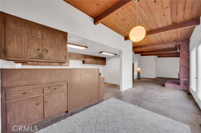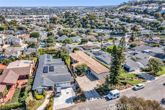 This Mid Century Modern home in the Lower Hollywood Riviera is just amazing….. It has great bones and a flowing floorplan….all on one level with over 2,000 square feet. It has four bedrooms and three bathrooms. Two bedrooms are master’s suite! The Living room with beautiful wood ceiling and hardwood floors (several rooms have wood ceiling) A Grand Fireplace in the family room that is open to the dining, kitchen and breakfast area. DOUBLE PANED WINDOWS….The other important feature of this property is that there is a lower level Huge room (not included into the square footage…probably 1,000 square feet) below the home that could be transform into anything that it is desired!!! The grounds have beautiful trees and fruit trees. The lot is quite large with over 8200 square feet! City Lights and Mountain Views…. The large driveway can accommodate several cars and toys. The 2 car garage has a large storage room!… The Hollywood Riviera neighborhood is steps to the Beach and the Boutiques and Restaurants of the Riviera Village. First time on the market in over 50 years.