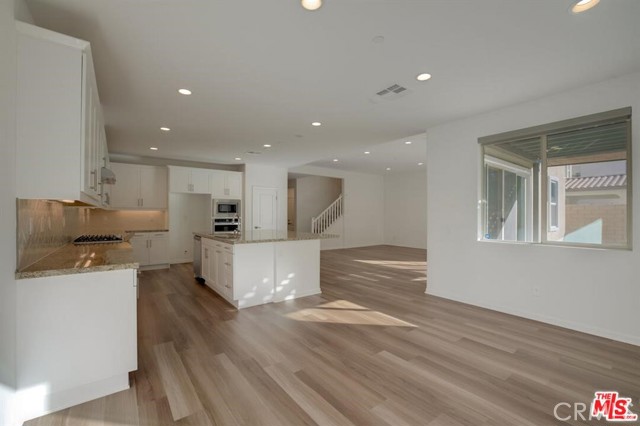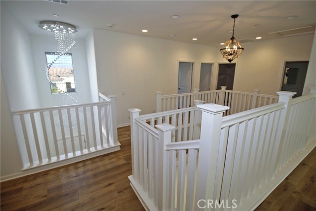 Spacious home in the sought after GATED community of Aliento. This house has 5 bedrooms, 3-Baths, high ceilings and a crystal light fixture in the entrance. It has newer flooring, recessed lighting, and chandeliers throughout. The open floor plan links the living/dining rooms and the big kitchen which has a huge island, granite countertops, tile backsplash, stainless steel appliances, and plenty cabinet space. It also has an office workspace area downstairs. There’s one bedroom and full bath downstairs. Upstairs there are 4 bedrooms, a laundry room, and two full baths. The primary suite has an en-suite bathroom with a separate tub and shower, dual sinks, and a huge walk-in closet. The spacious loft area is perfect for those big family gatherings and special occasions.