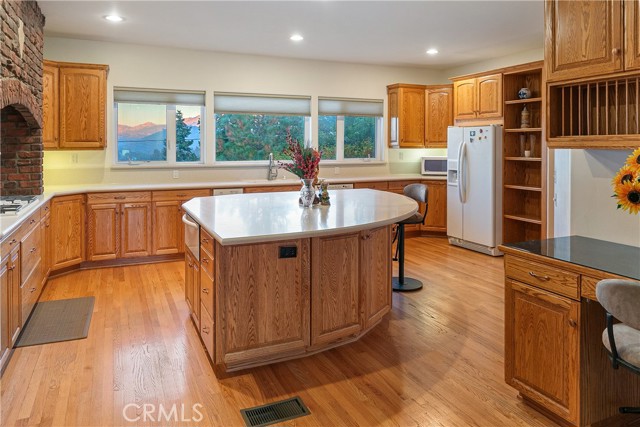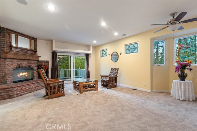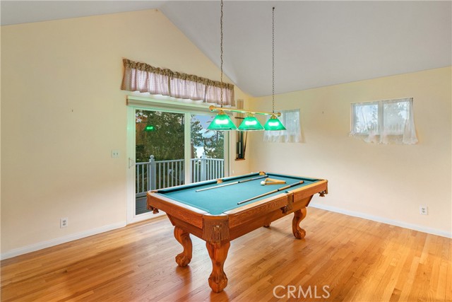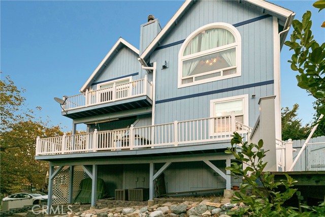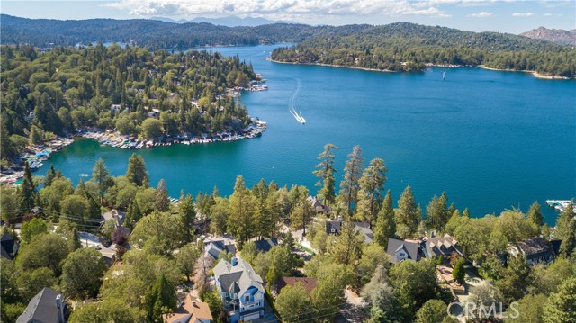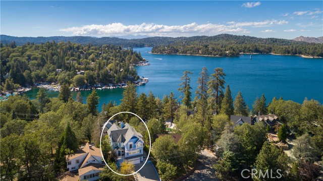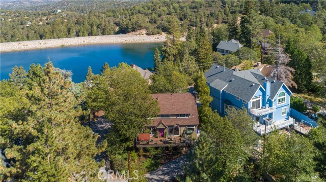 WALK TO LAKE FROM THIS MOUNTAIN GEM!rnThis Lake Rights home offers a glimpse of Papoose Lake + a filtered lake view of Lake Arrowhead. Nestled just four houses away from the pristine lake, this property is located in a highly sought-after neighborhood. rnThe kitchen is a culinary dream with an expansive island, double oven, food warmer, and a convenient trash compactor. The large walk-in pantry ensures you have all the storage space you need. An adjacent formal dining room complements the kitchen, making it perfect for entertaining.rnIn the living room, a brick fireplace adds warmth and charm. Step outside to the deck and enjoy a filtered lake view while grilling on the built-in BBQ.rnThe main level features a spacious bedroom with an bath, offering convenience and flexibility.rnUpstairs, you’ll find a generous master suite with a two-sided fireplace that adds ambiance to both the bedroom and the master jetted tub and another junior suite. A standalone fireplace in the family room creates a cozy atmosphere which is adjacent to the game room. Abundant storage space is provided by a wall of closets along the hallway. The two-car garage includes a bonus workshop/office with its own air and heat control. There’s ample parking for additional cars and boat in the driveway. The property features an outdoor stream and waterfall built by Mountain Ponds, offering the soothing sound of nature. The lake trail is just a couple of minutes walk away. Whether you’re seeking a full-time residence, a part-time getaway, a vacation home or an income property, this property fits the bill. Enjoy stunning sunsets and peaceful walks in the neighborhood, immersing yourself in the beauty of Lake Arrowhead. The house comes equipped with a generator, ensuring uninterrupted power during outages. Modern amenities include a tankless water heater and newer furnaces. This 3-bedroom, 3-bathroom property, spanning 3,245 sq ft, is competitively priced at $976,000. Don’t miss out on this incredible opportunity. Act quickly to make this Lake Arrowhead gem your own.