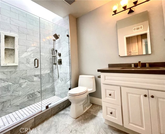 View! View! View! This home is close to the Brea Mall and gourmet restaurants. It has been recently remodeled, with fabulous 4 bedrooms in a large quiet cul-de-sac that has incredible Orange County and Catalina Island views. Disneyland fireworks which can be enjoyed through the picture windows in the living room, dining room, kitchen, family room, and master bedroom. The home is nearly fully furnished and is ready for a family to move in and enjoy. There is hardwood flooring downstairs, soft toned walls, large windows with shears and wood blinds to create a warm, inviting atmosphere. The kitchen has stone countertops, a center island, and a large pantry. Besides the beautiful views, the master bedroom has a large attached deck, a spacious walk-in closet, a private bathroom with dual sinks, a jacuzzi tub, and a deluxe rainfall shower. The closet in each bedroom includes a built-in closet organizer. The upstairs bathroom also has a deluxe rainfall shower with a beautiful skylight. The large garage easily parks 2 cars and has numerous storage cabinets for nearly unlimited storage.