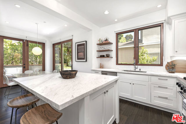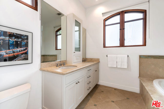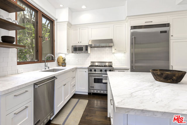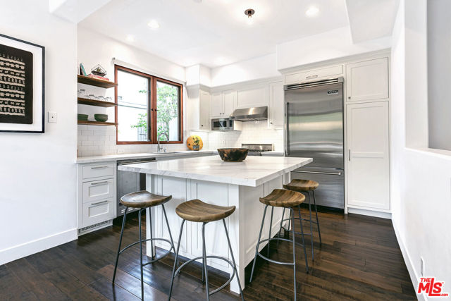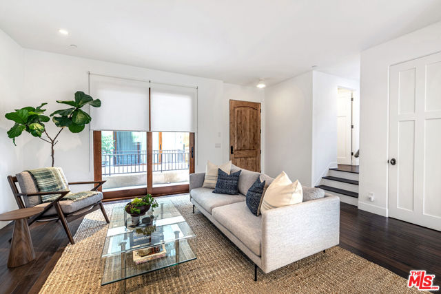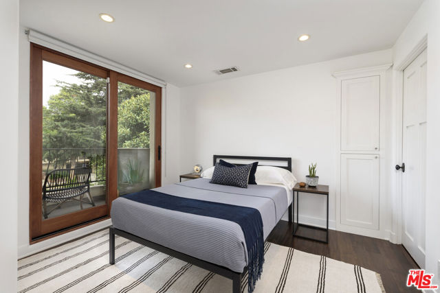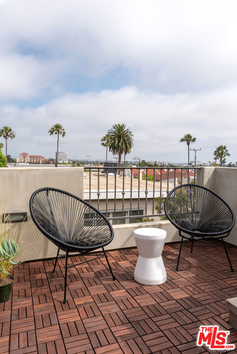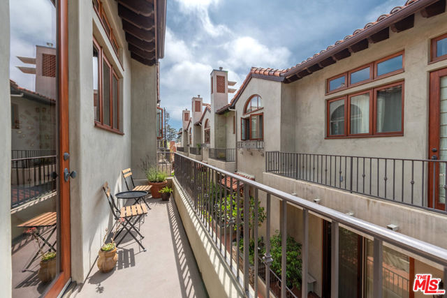 Front unit townhouse located 1/2 block from Montana Ave on a wide street. Main level has open floor plan with fireplace and wraparound patio that provides serene landscaped views. Updated chef’s kitchen features Viking appliances, custom white cabinetry, marble countertops, and island that seats 4. Primary bedroom has soaring ceilings, balcony, walk-in closet, and spa-like bathroom with dual sinks, soaking tub, and shower. Second bedroom has a balcony, large walk-in closet, and en-suite bathroom. Loft space and rooftop deck on top floor. Laundry area inside unit. Interior has dark wood floors, Sierra Pacific windows and doors, and high ceilings throughout. Parking is private 2-car garage with direct entry into the unit and some storage. Complex is gated, beautifully landscaped, and has 2 guest spaces. Unfurnished, freshly painted, and available now.
