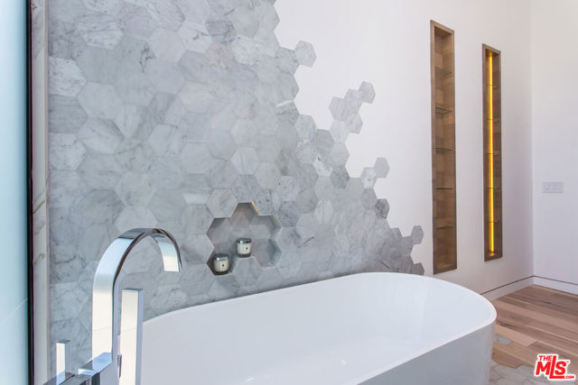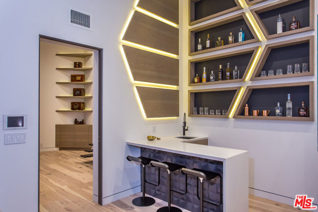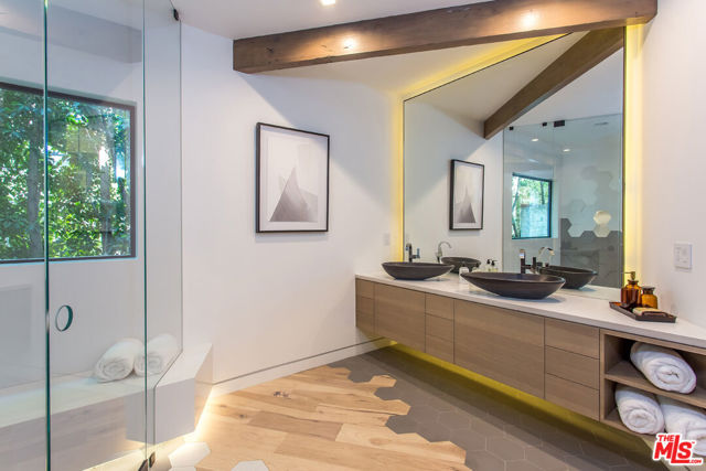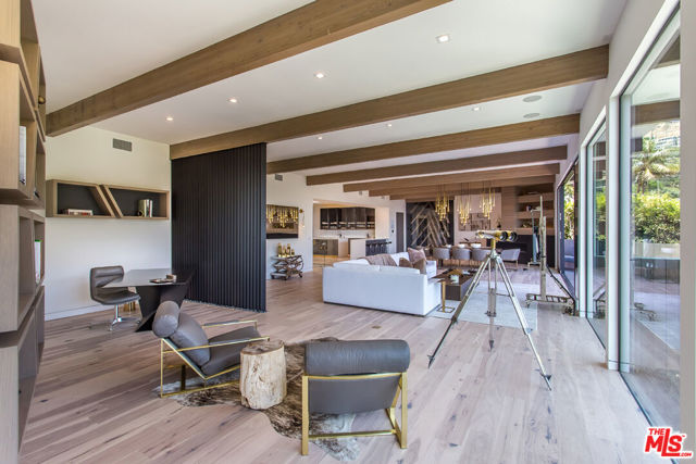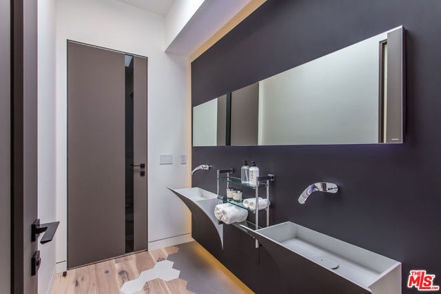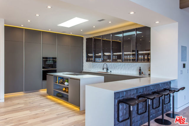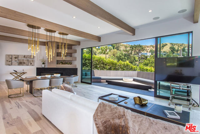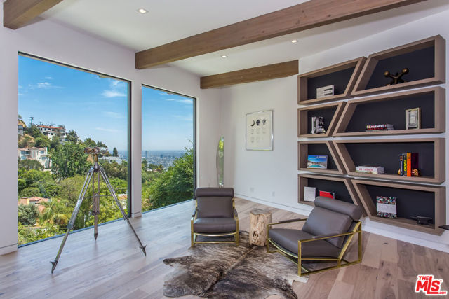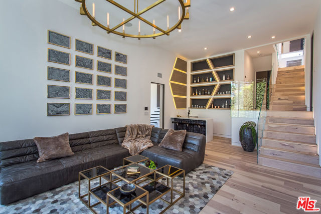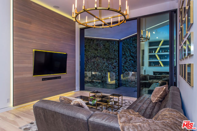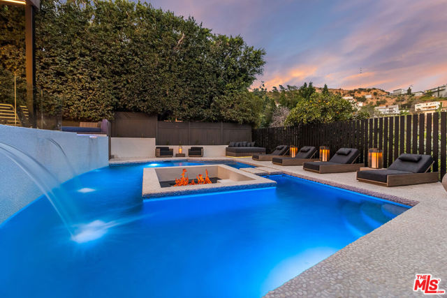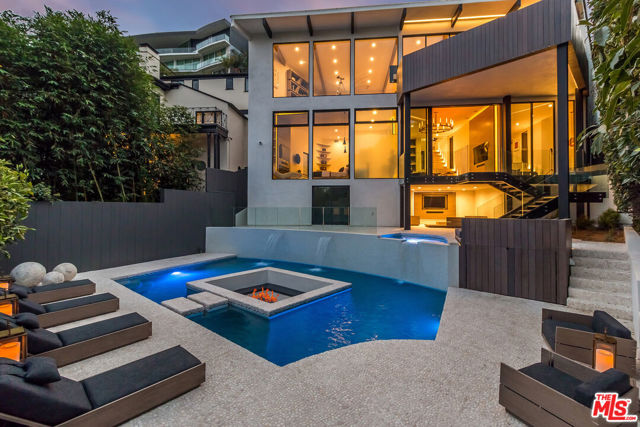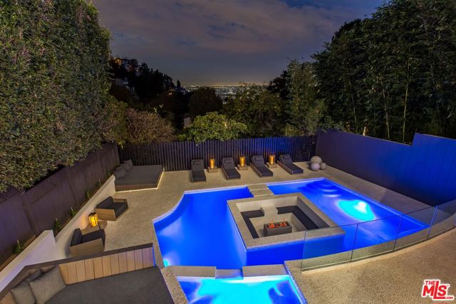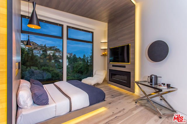 The most exquisitely designed and meticulously crafted home in the Hollywood Hills, with expansive views of the city skyline. Situated on a quiet cul-de-sac street off lower Sunset Plaza Drive, boasting unrivaled quality and bespoke finishes, soaring 13-foot ceilings and tremendous floor-to-ceiling windows and sliding glass doors allow an abundance of natural light. Two luxurious master suites offer elaborately designed en-suite baths, enormous suede-lined walk-in closets, an impressive floating steel staircase, and fireplace. An open floor plan, Italian kitchen with new-line Miele appliances, beautiful wine cellar, media room with wet bar, and ambient LED lighting accentuating custom woodwork and cabinetry throughout. A massive entertainers yard offers a conversation pit with fireplace set beyond floating steps in the middle of the pool, massage room replete with sauna and shower, luxurious day beds, complete outdoor kitchenette, built-in BBQ, and T.V. viewing area.